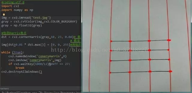 可以看到,haris角点对这种格子即使是手画的格子都能够很好地检测出角点,但在我最近检测的下面这个例子有可能是光线的原因,检测效果不太理想,也可以看看